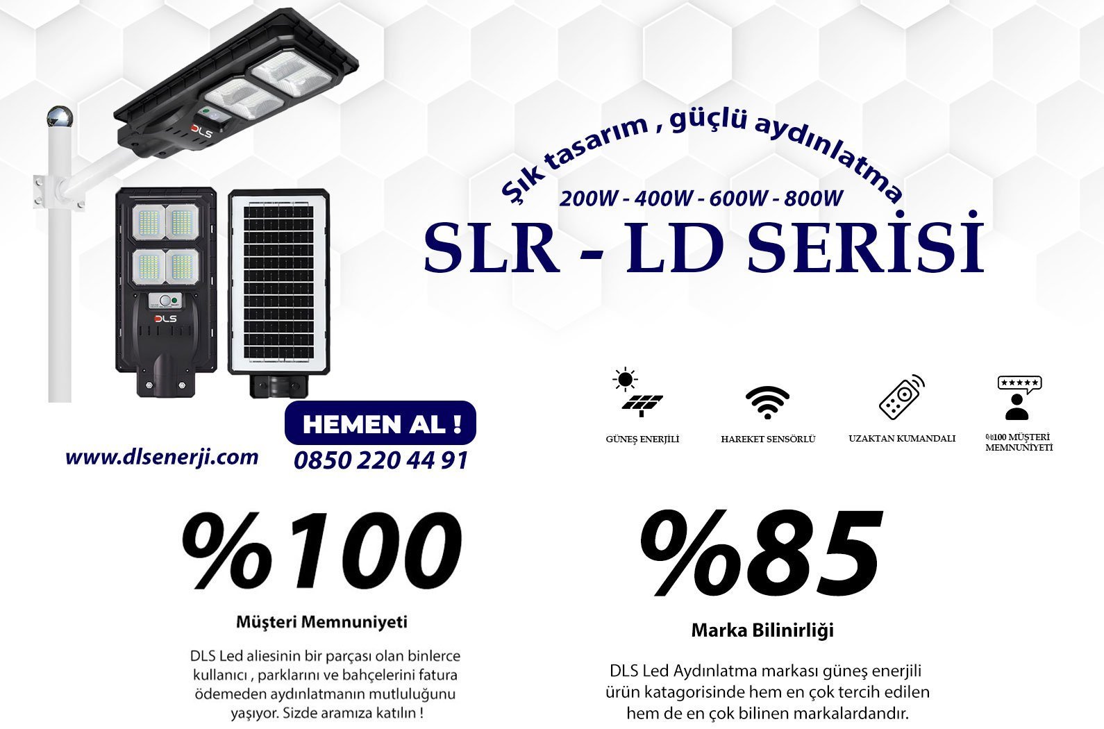 DLS 800W Solar Güneş Enerjili LED Bahçe & Çevre Aydınlatma Lambası Profesyonel Dış Mekan 201-800